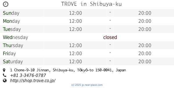 | Monday | closed | |||||